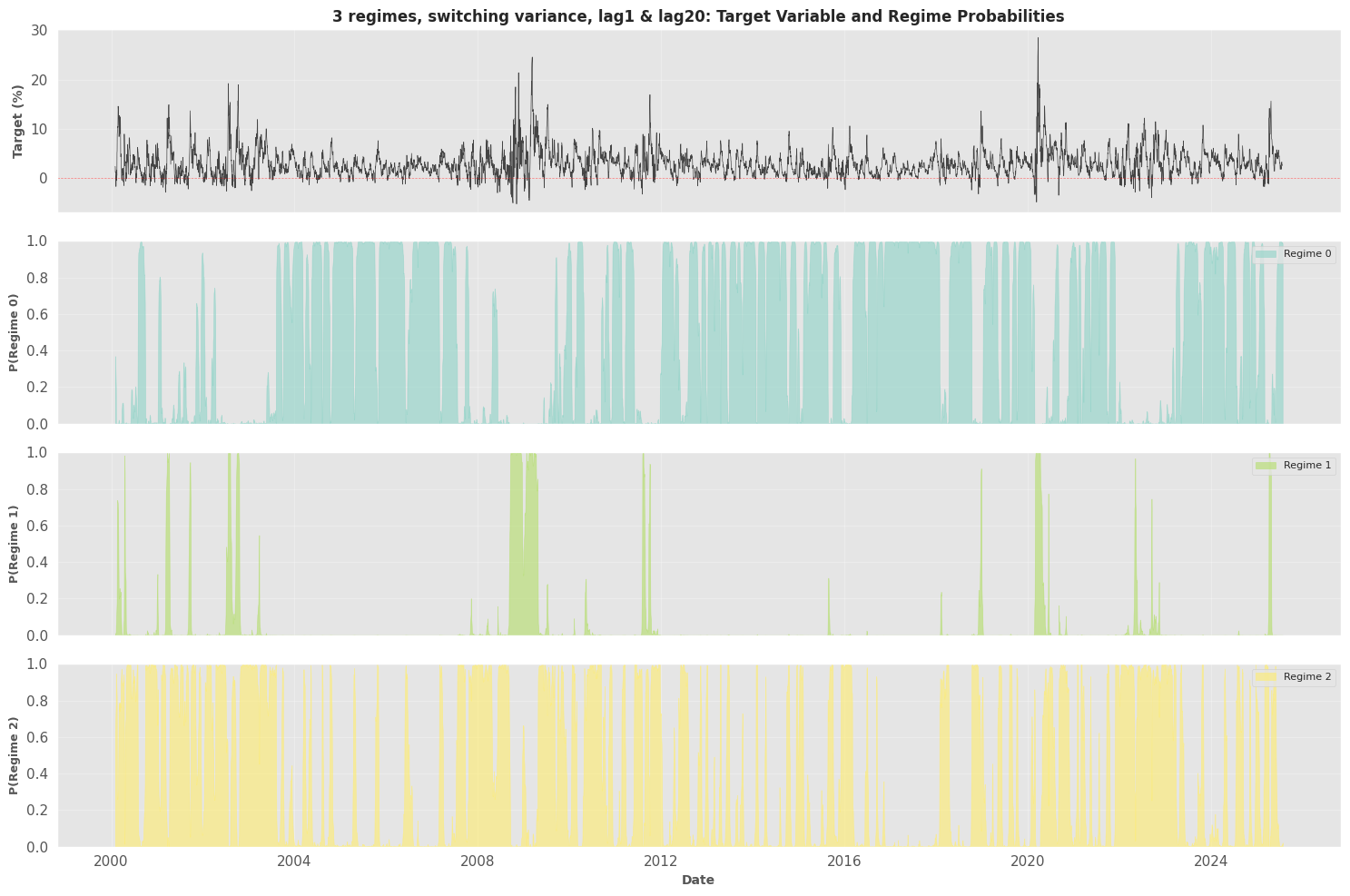 REGIME ANALYSIS: 3 regimes, switching variance, lag1 & lag20
